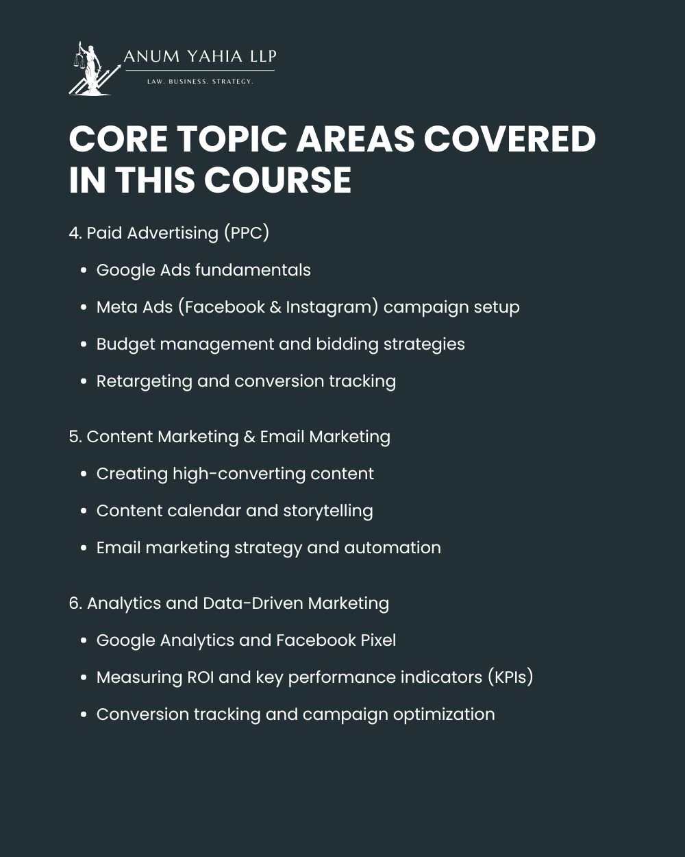 • Practical exercises using Meta Ads, Google Ads, SEO tools, and analytics platforms
