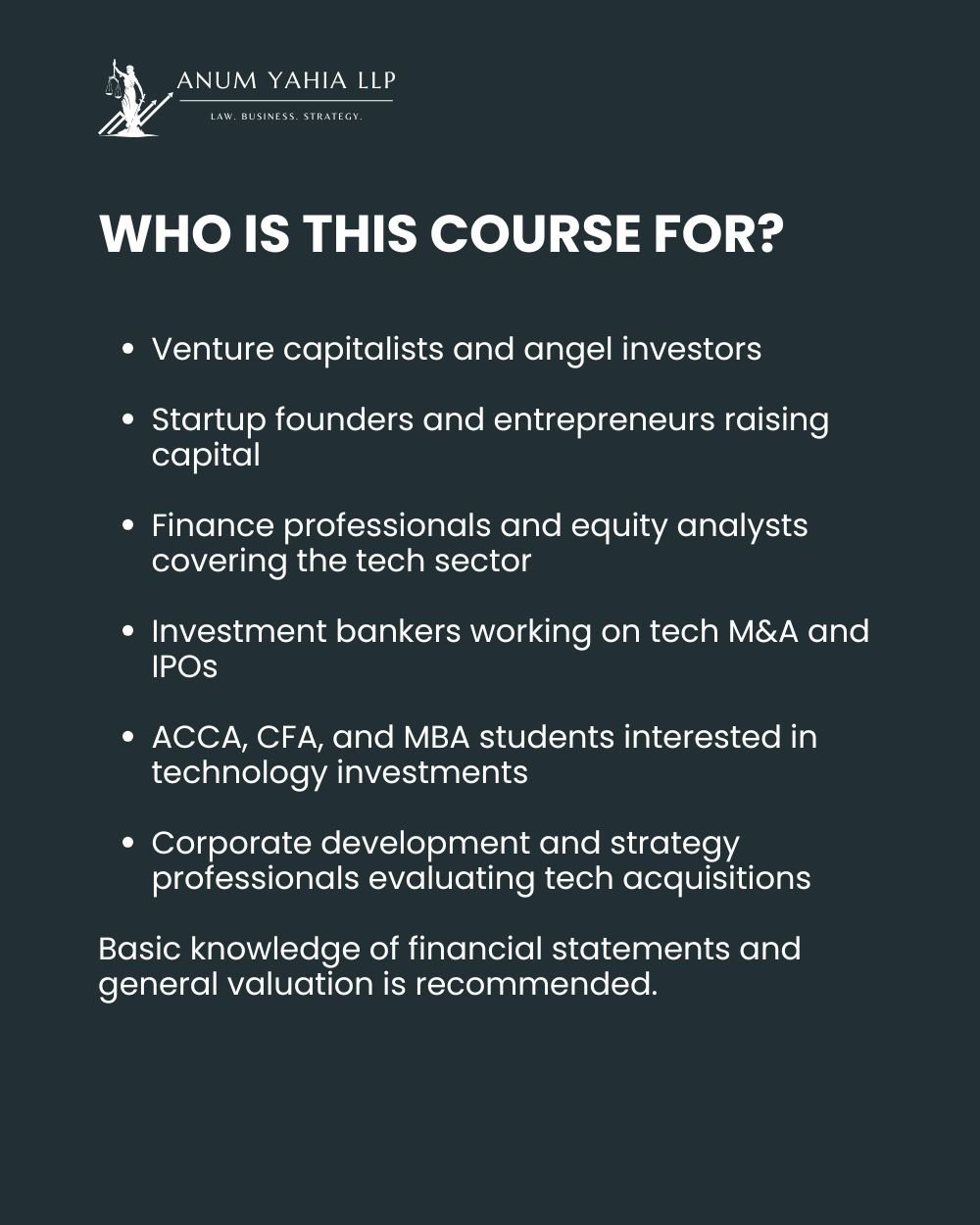 • Focused on valuing tech companies, SaaS, fintech, e-commerce, and digital platforms